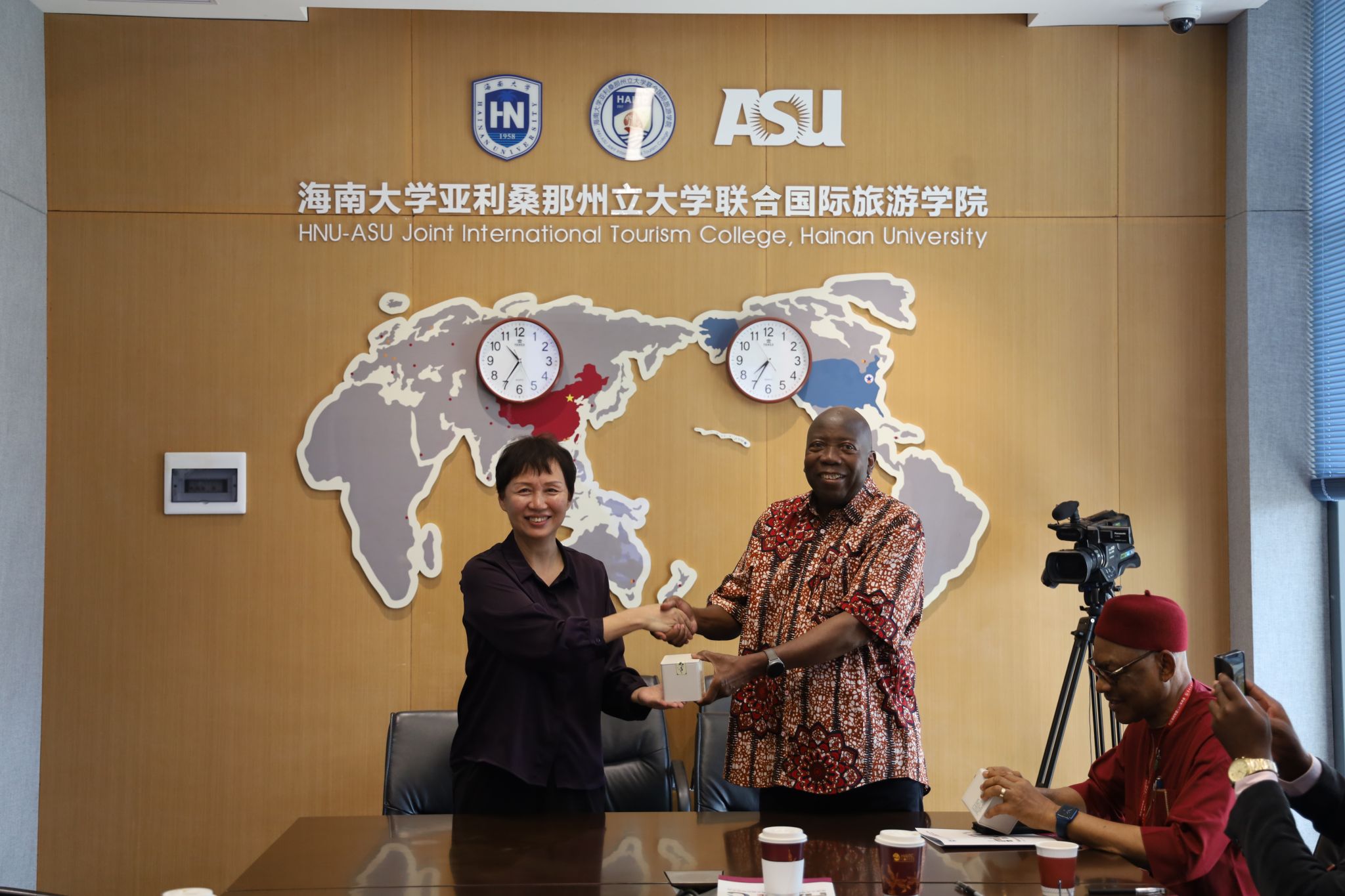 王琳院长对菲利克斯·达帕雷·达科拉一行来访永利集团国际旅游和公共管理学院表示热烈欢迎,详细介绍了学院和永利集团热区高校联盟国际联合培养项目的基本情况,希望进一步依托热区高校联盟平台,培育更多国际化人才,推动热带区域发展。