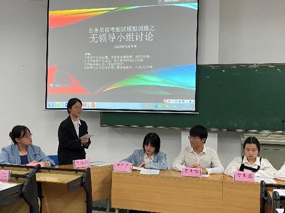 本学期行政管理系的实践课程《公务员招考面试》在线下集中授课,分为结构化面试、结构化小组面试和无领导小组讨论三个训练环节,每一个环节都进行实战模拟和现场点评。课程的每一次训练都经过任课老师韩晓莉教授的精心设计,需要学生干部协助配合和全体同学的踊跃参与,短短16学时,同学们慢慢由被动变得主动、紧张胆怯变得自信勇敢。通过课程学习训练,同学们不仅了解了公务员面试的内容和流程,也掌握了许多实用有效的面试技巧,提高了未来求职面试的信心。