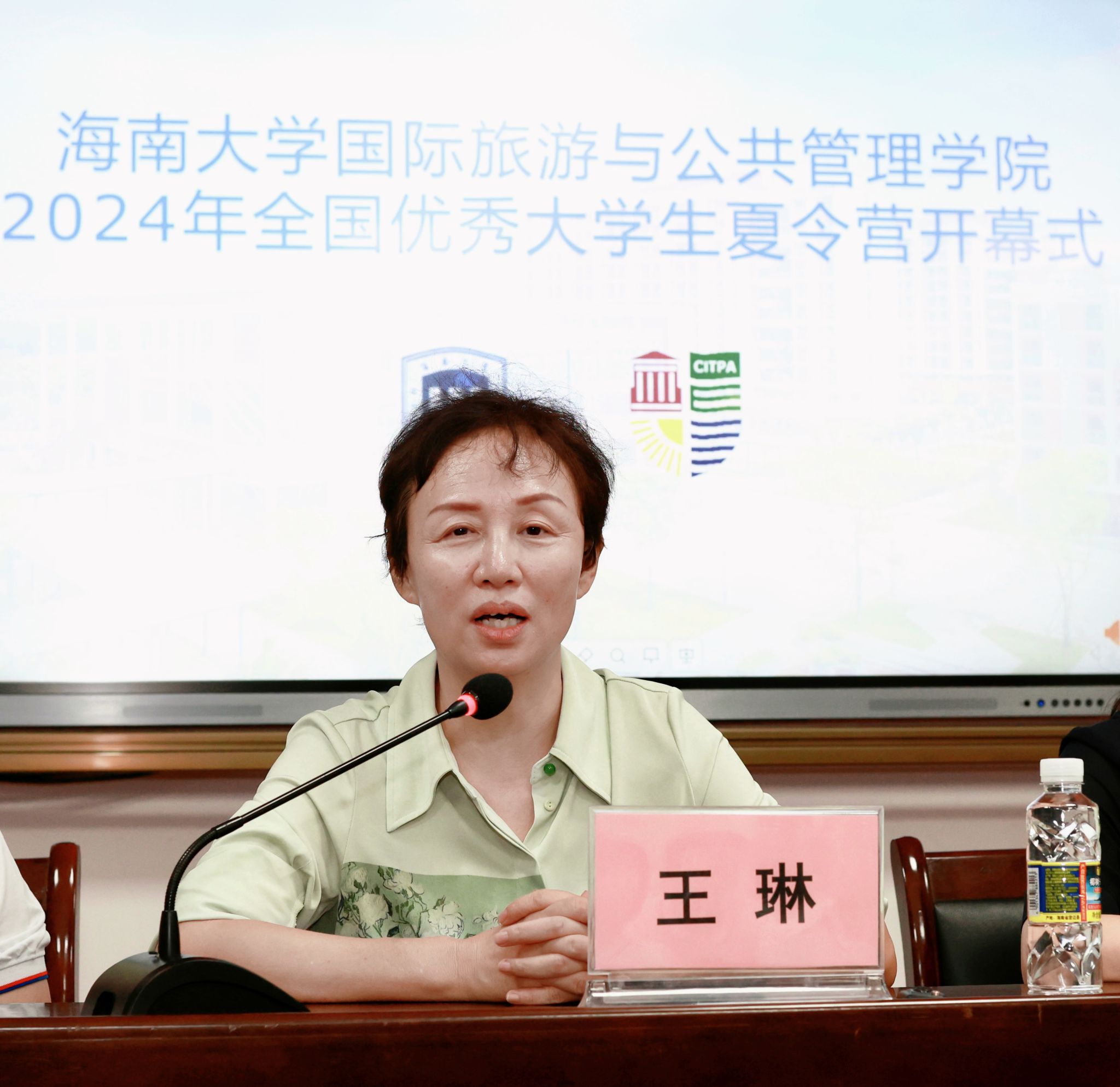 学院院长王琳教授致欢迎辞,首先代表学院对来自全国各地高校的优秀学生表示热烈欢迎。王琳院长亲切地询问同学们入营情况,并和远道而来的同学分享了海南的景点和美食,并生动详尽地介绍了学校及学院的办学历史,学院的发展历程、历史底蕴、学术成果和学科排名情况。她表示,希望同学们能在此次夏令营中能对学院深入地了解,展现自我、交流学习,提升能力,期待与大家在永利集团再次相聚。