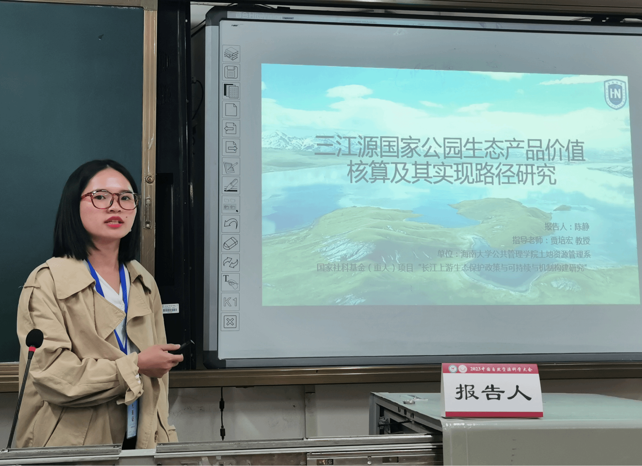 在19日的分会场主题报告中,贾培宏教授作题为“长江上游生态系统碳汇潜力分析及多情景模拟研究”的学术报告,详细报告了其团队以3S技术为基础耦合InVEST与PLUS模型,以格网为评估单元挖掘1990-2020年间土地覆被转化的碳汇效应演化规律,在综合考虑气候-土地利用景观-社会经济等因素影响下模拟不同情景2035年土地覆被及碳储量状况。博士生朱雨芯作了题为“长江上游地区生境质量时空演变及其驱动机制研究”的学术报告。硕士生刘阳、陈静、梁传卓分别作了题为“海南热带雨林国家公园生态空间保护格局研究”“三江源国家公园生态产品价值核算及其实现路径研究”以及“基于LDA模型的中国长江上游环境保护政策关注度配置分析”的学术报告。其中,我院二年级硕士研究生陈静获本届大会优秀论文奖。