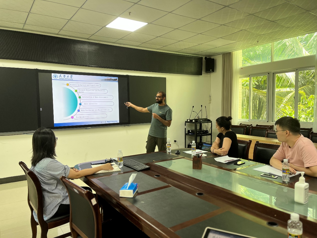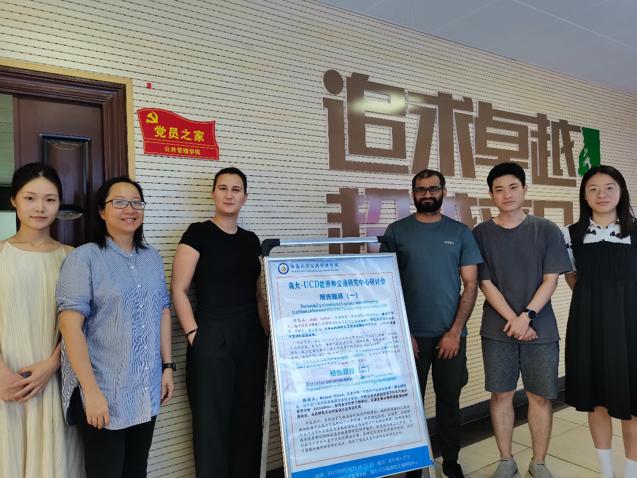随行的两名博士研究生Aqib Zahoor和Nihed Benani为学院师生分别作题为“依托电动车和可再生能源实现交通领域2060年碳中和”与“蓝碳与碳市场:科学研究和技术开发的综合路径”的交流研讨分享。永利集团-加州大学戴维斯分校能源和交通发展联合研究中心(简称“海大-UCD能源和交通研究中心”)执行主任吴丹副教授对两位博士生的报告作精彩点评,并提出后续研究拓展与合作的思路。