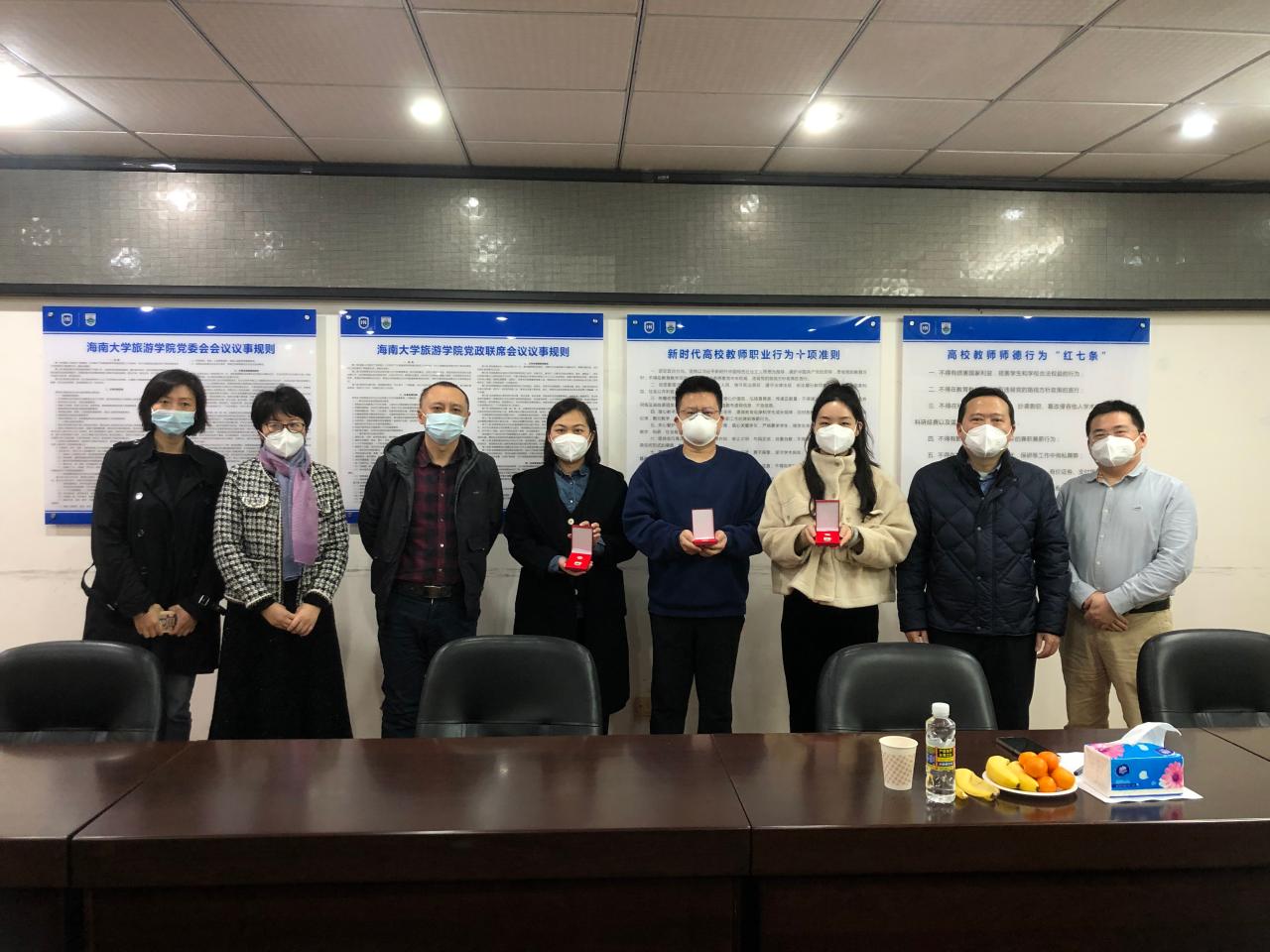 茶话会最后学院领导为新进教职工们赠送了学院徽章及慰问礼品,并一同拍照留念。