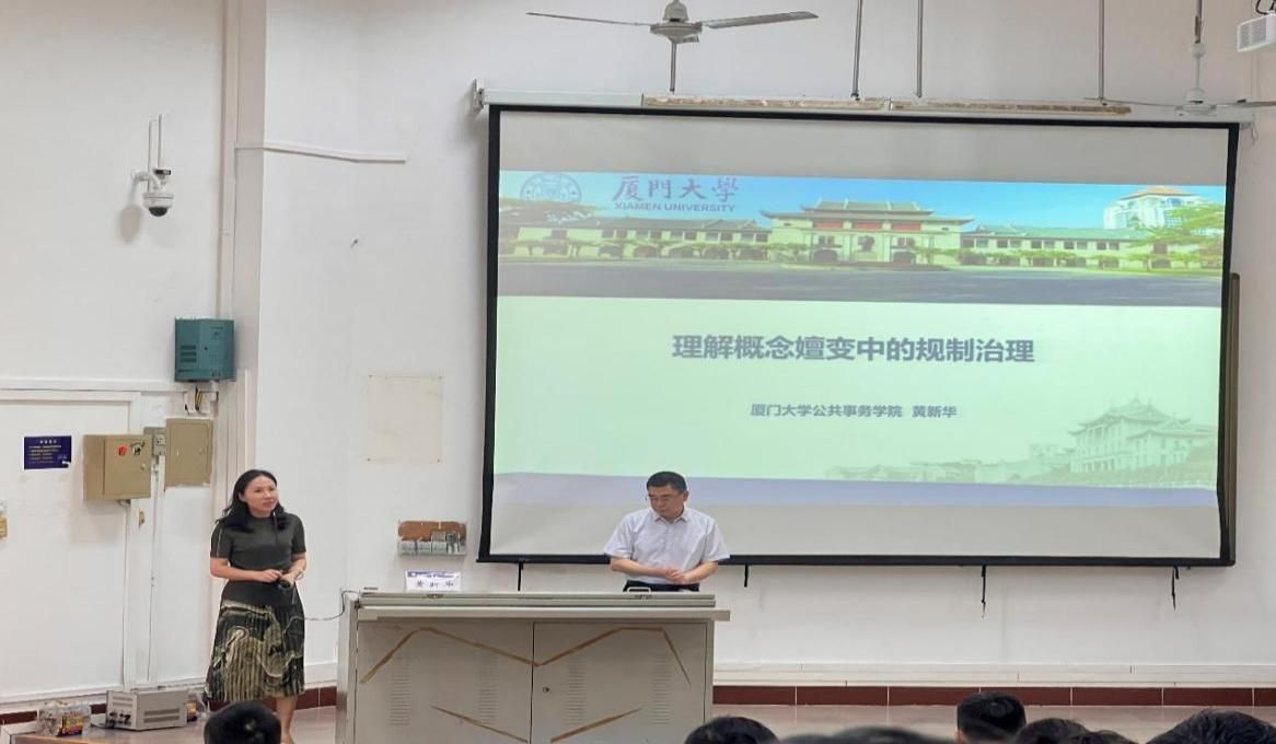为了让同学们更好地理解规制治理在新发展阶段是如何贯彻新发展理念、构建新发展格局、推动高质量发展,黄新华结合海南自由贸易港从要素型开放到制度型开放的建设创新,讲解规制治理在其中发挥的重要作用,让同学们对海南自由贸易港的建设有了深入的认识和思考,激励着同学们在公共管理问题上的学习和研究。