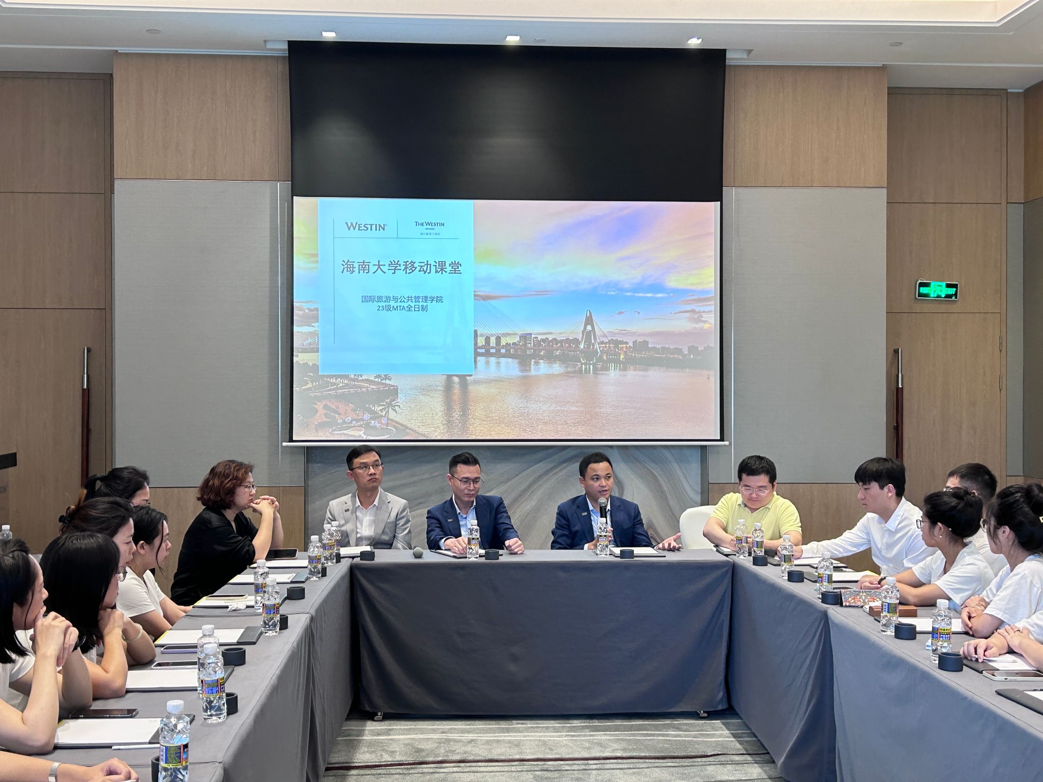 为进一步推进MTA教学改革创新,促进课程教学与实践的融合,《服务管理》课程任课教师何彪教授于2024年5月9日带领2023级MTA全日制班的学生们走进海口威斯汀酒店,开展了一次丰富的移动课堂教学活动。海口威斯汀酒店总经理卢运帅先生等高管热情接待了我院师生。