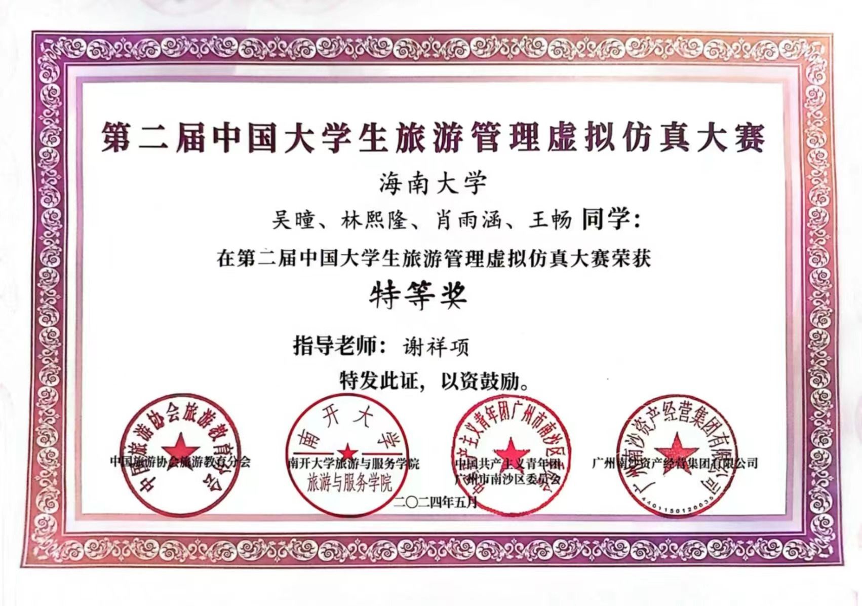 近日,第二届全国大学生旅游管理虚拟仿真大赛暨“i南沙 正青春”广州南沙全域游打卡短视频挑战大赛全国总决赛落下帷幕。yl7703永利集团参赛团队荣获虚拟仿真大赛特等奖一项,二等奖四项;全域游打卡短视频挑战大赛二等奖一项;指导教师谢祥项副教授、侯佩旭副教授、雍天荣副教授、李萍副教授荣获“优秀指导老师”称号。