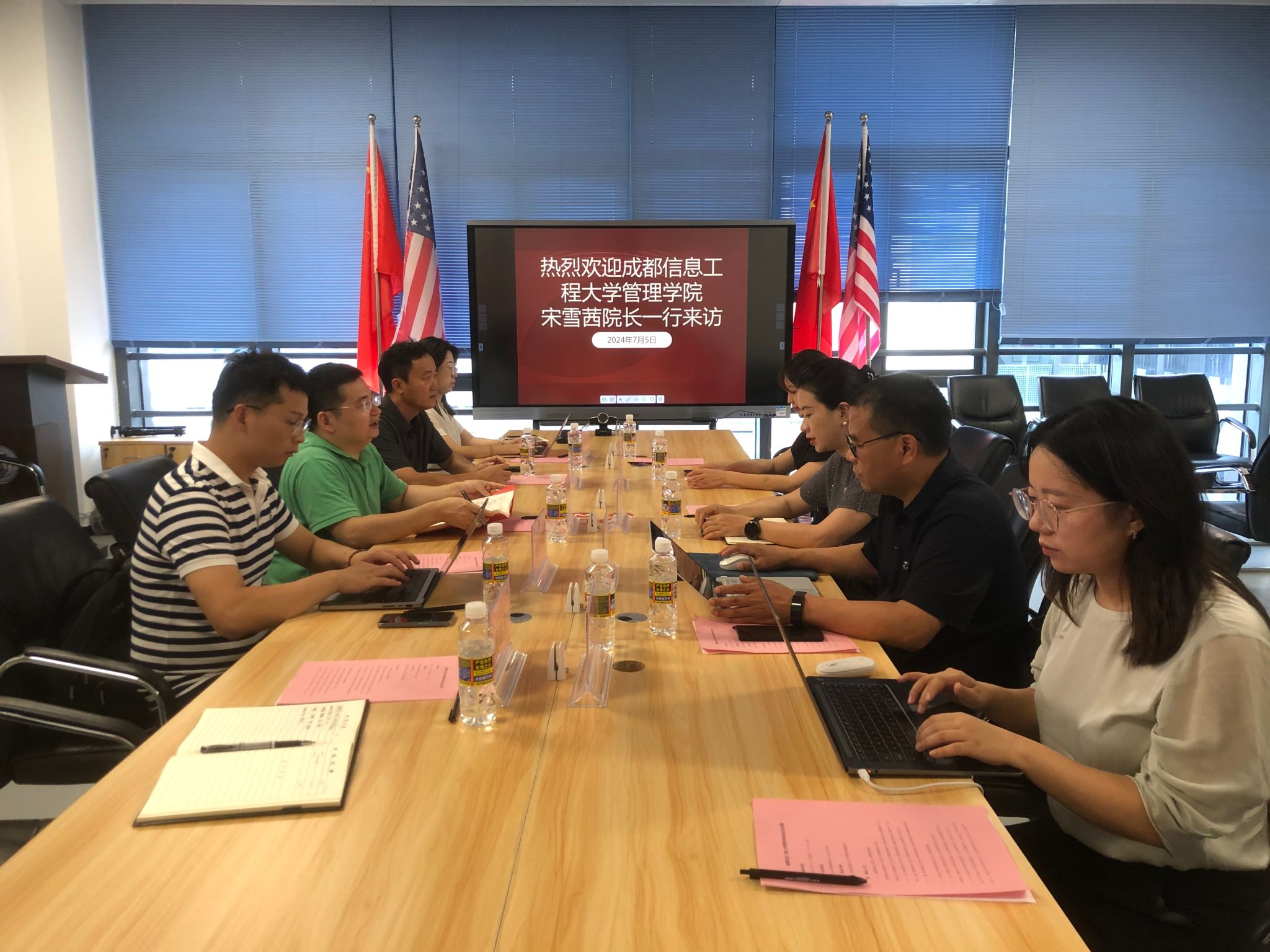 7月5日下午,成都信息工程大学管理学院院长宋雪茜一行到yl7703永利集团访问交流,并在观澜湖校区办公楼A521会议室举行座谈会。何彪副院长出席并主持会议。