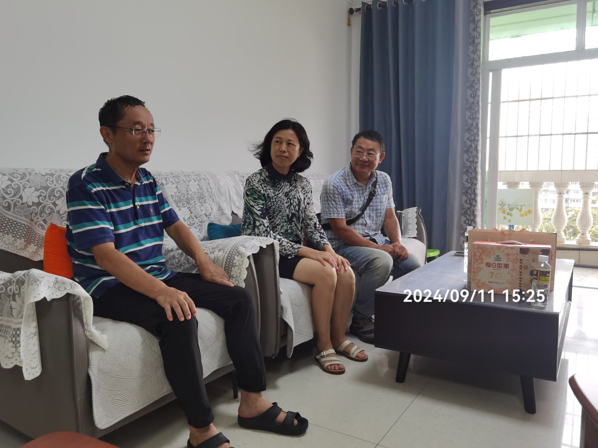 恰逢教师节、中秋节双节同庆,2024年9月11日下午,学院党委副书记、工会副主席欧少红以及工会委员陈朝阳、王青山一行走访慰问学院退休教师吴鸿教授。欧少红副书记代表学院党委和工会向吴教授致以节日的祝福和诚挚的问候,详细询问了其家庭受“摩羯”台风影响的情况,了解其退休生活情况,倾听意见和建议。学院事业的发展,离不开吴教授等老一辈教师的辛勤付出,他们用自己的青春和热爱为学院打下了厚实的基础,塑造了优良的传统,是学院事业发展的宝贵财富。希望老教师们继续关心和支持学院的发展,传承经验、建言献策,共同携手创建学院事业发展的新篇章。