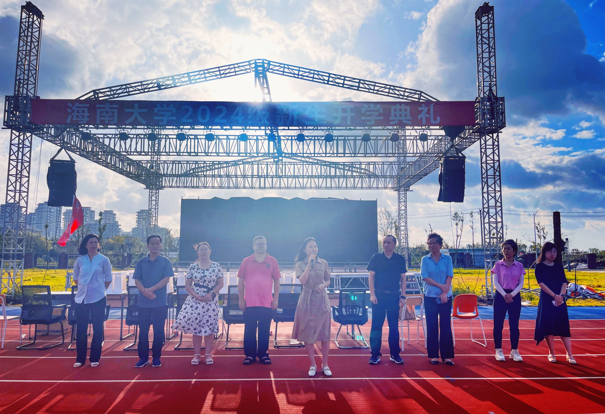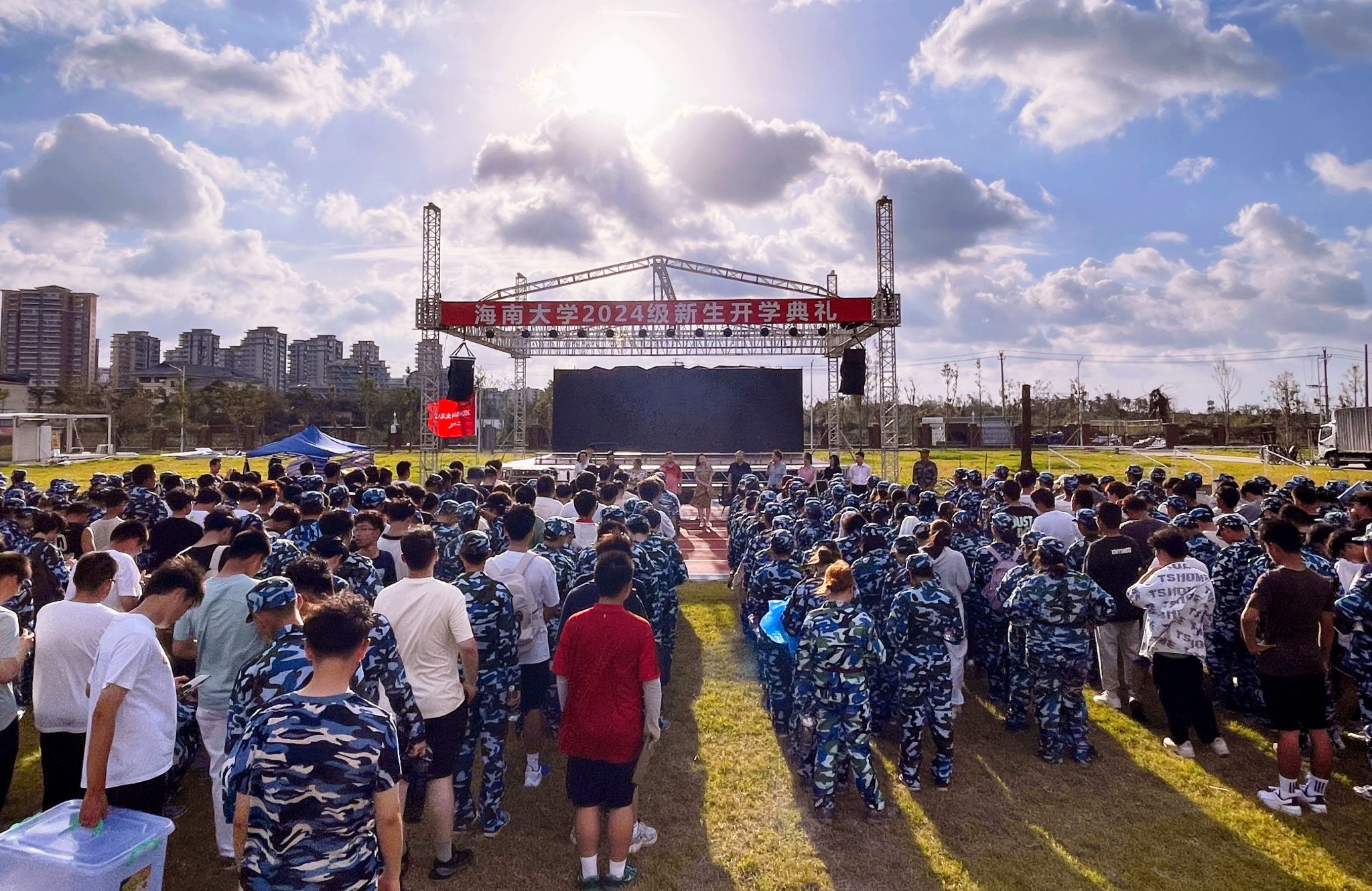 9月18日下午,yl7703永利集团院长王琳、执行院长徐艳晴、党委书记郭强带领班子成员、各系主任和行政干部到观澜湖校区2024级学生军训场地,看望慰问2024级参加军训学生和承训教官,了解军训各项科目训练进展和成效。
