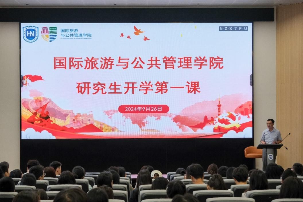 学院执行院长徐艳晴教授对2024级研究生新生表示了热烈的欢迎和最诚挚的祝福。徐院长在开学第一课中着重介绍了学院发展概况、学科建设、师资力量等多方面情况,强调了研究生阶段在个人成长与学术发展中的重要地位,并勉励同学们珍惜时光,勤奋学习,自主创新,将个人理想融入国家发展大局和海南自贸港建设的宏伟蓝图之中,努力成为行业领军的人才和时代栋梁。徐院长希望同学们能够保持在台风“摩羯”防御与灾后重建中展现出的勇敢、坚韧、团结,在接下来的研究生生涯中绽放光彩。