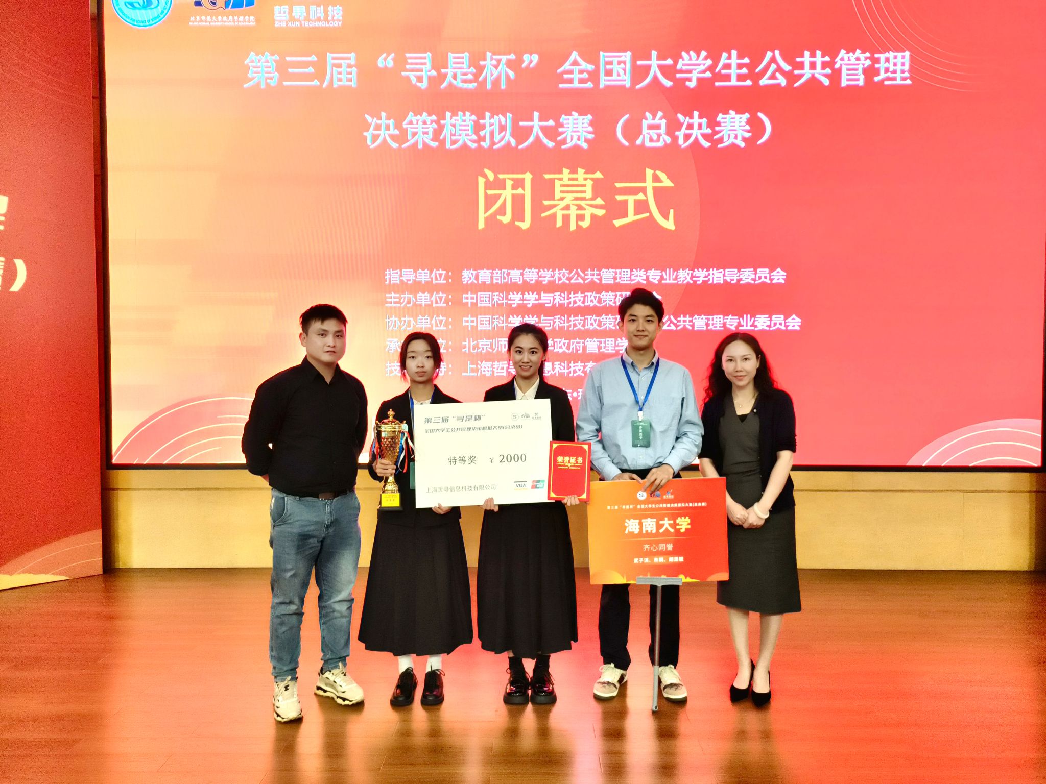 yl7703永利集团派出“齐心同誉”团队参赛。该队由行政管理专业2020级武子淇、2021级朱桐以及2022级胡潇毓三位学生组成。指导教师由学院执行院长、行政管理专业责任教授徐艳晴和行政管理专业魏诗强副教授担任。团队经过数月的精心备战和策略优化,荣获华南赛区特等奖,成功晋级全国总决赛,并在总决赛上表现优异,最终摘得全国总决赛特等奖。