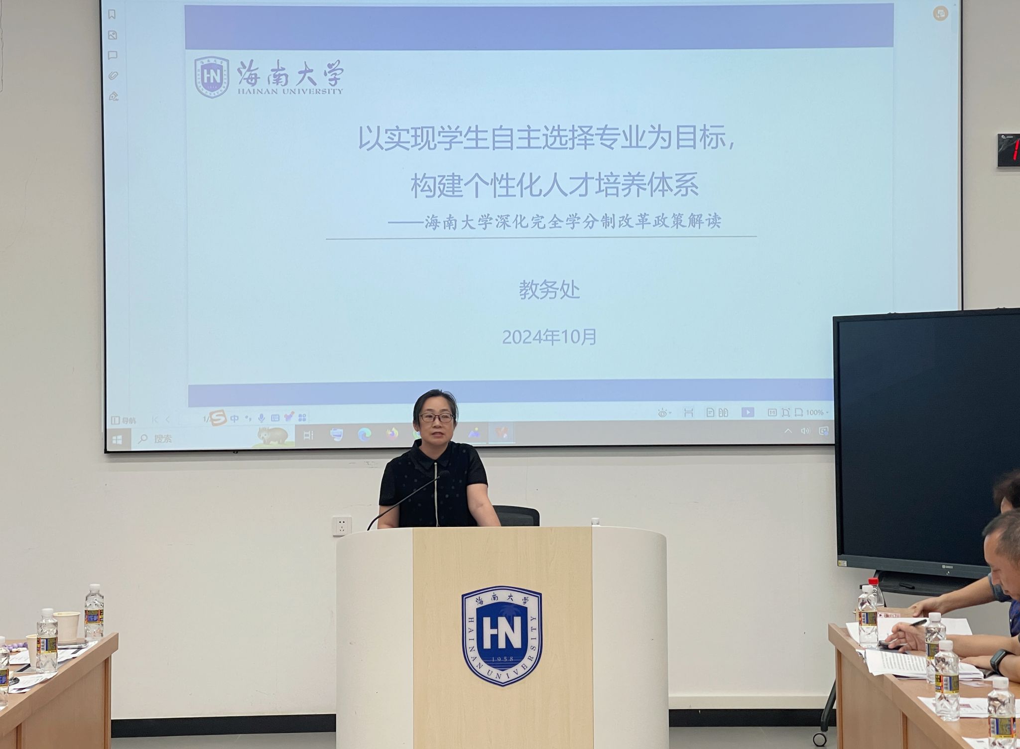 2024年10月22日下午,yl7703永利集团在观澜湖校区3A103教室召开了全体教职工大会。大会邀请了永利集团教务处(继续教育学院、创新创业学院、退役军人教育学院)李玉凤副院长、教务处教材科科长余力力为全体教职工做关于永利集团深化完全学分制改革的政策解读。学院院长王琳、执行院长徐艳晴、党委书记郭强、副院长何彪、副书记欧少红、副院长黄朝明、挂职副院长刘海洋出席大会,大会由王琳院长主持。