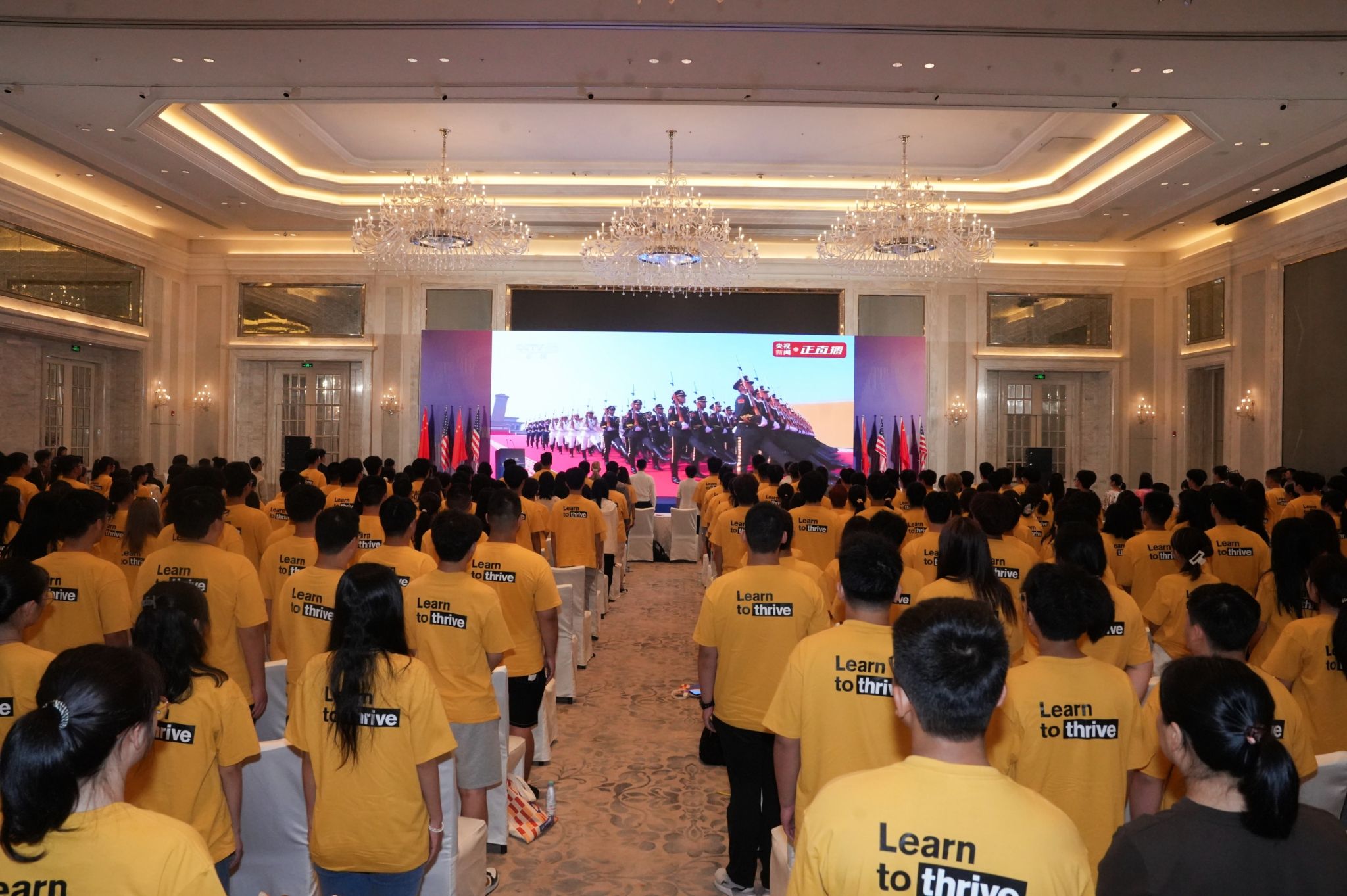 2025年9月3日上午,纪念中国人民抗日战争暨世界反法西斯战争胜利80周年大会在北京隆重举行。天安门广场举行盛大阅兵仪式,中共中央总书记、国家主席、中央军委主席习近平发表重要讲话并检阅受阅部队。为深切缅怀革命先烈、弘扬伟大抗战精神,yl7703永利集团组织师生集中观看直播,共同铭记伟大历史胜利,激荡起炽热的家国情怀与强烈的使命担当。