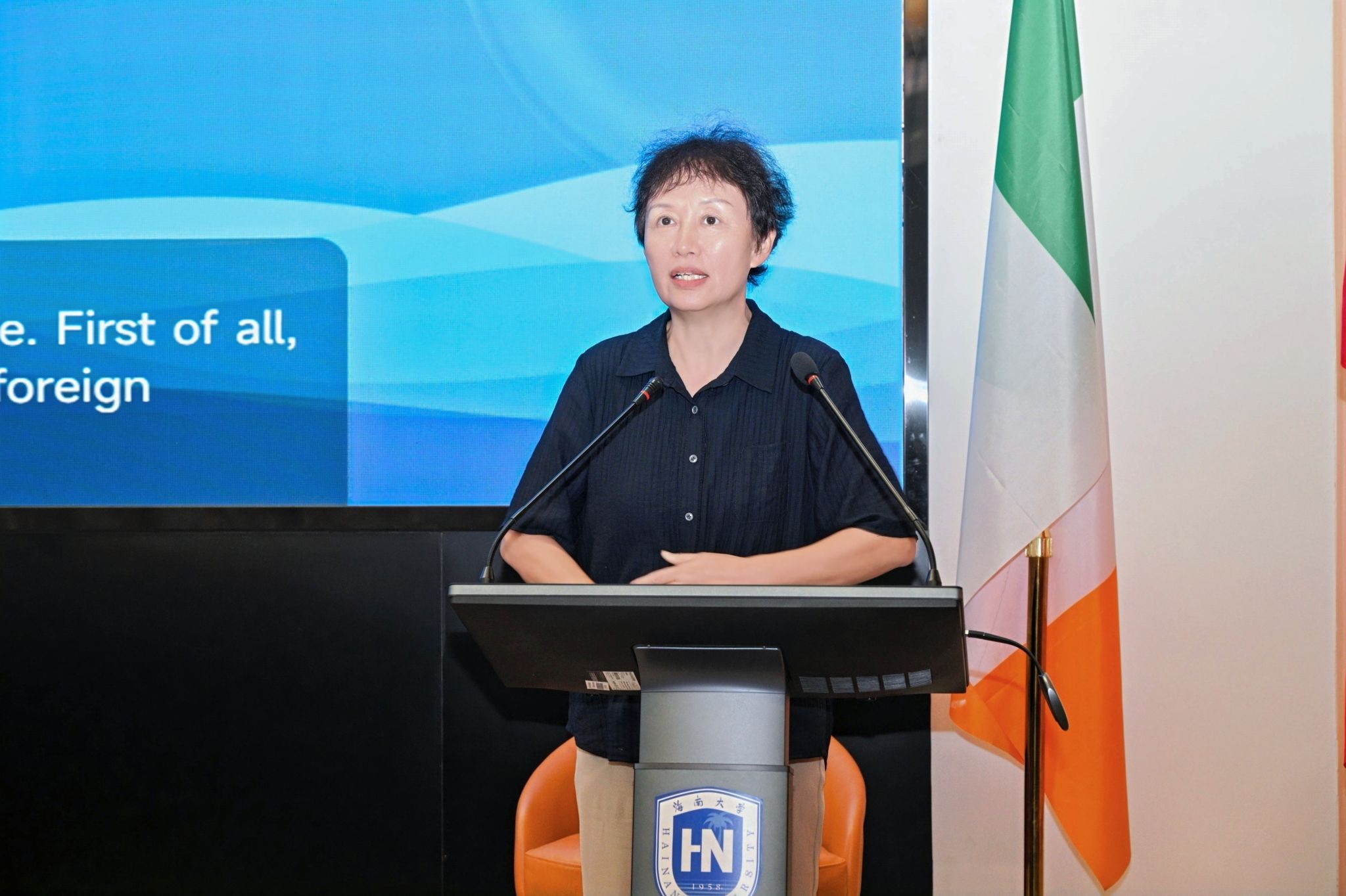 王琳院长在总结讲话中向2025级新生表示欢迎,并介绍了学院在国际化办学、学科建设与人才培养等方面取得的成果。她希望同学们立足全球视野,增强创新精神,在中爱合作项目的平台上追求卓越、超越自我。