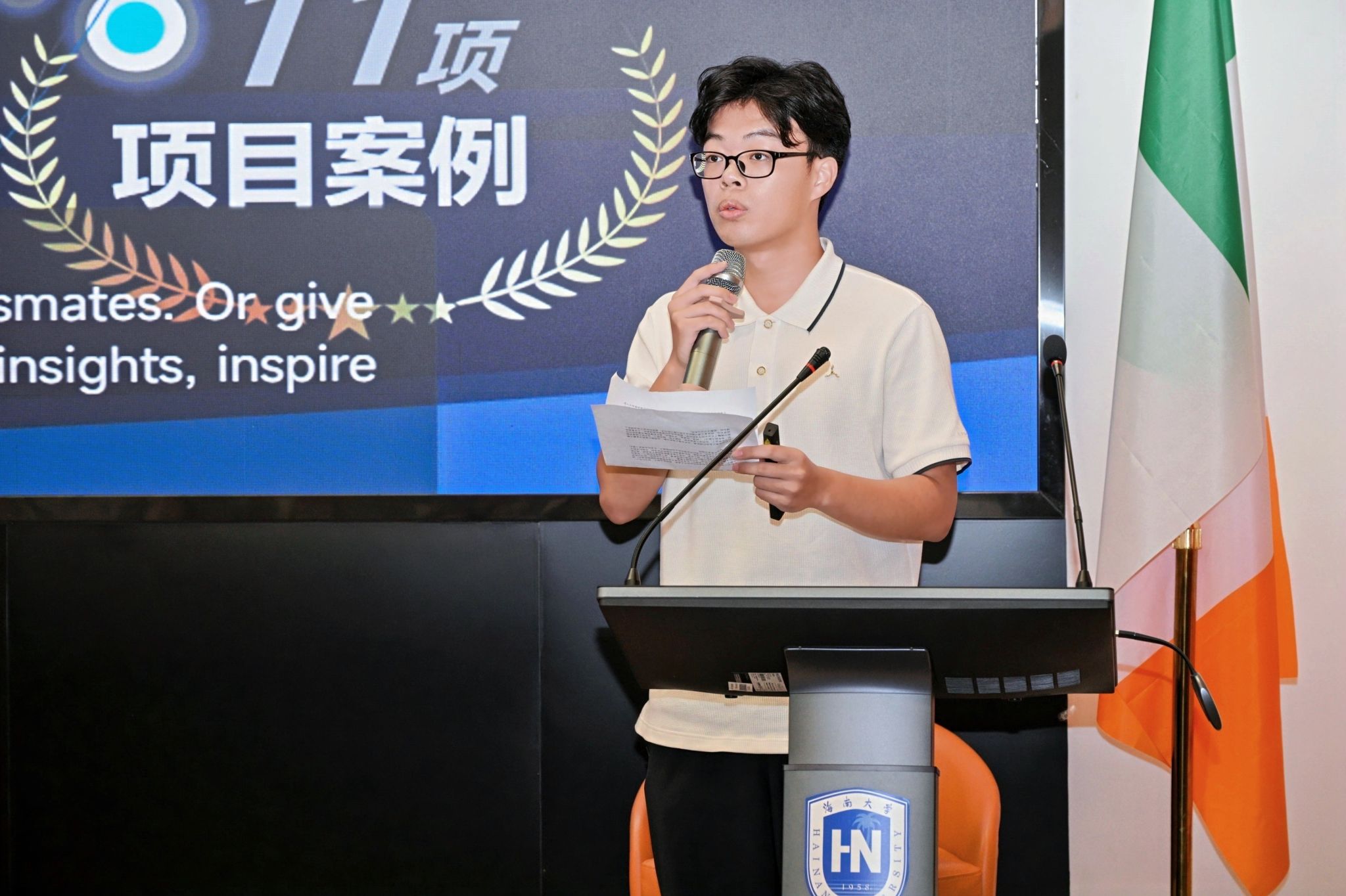 在校生代表单元杭结合个人成长经历,从课程学习、时间规划、创新创业等方面分享心得体会,建议新生主动融入校园生活,勇于探索、敢于尝试,充分利用中外合作办学平台实现自我提升。