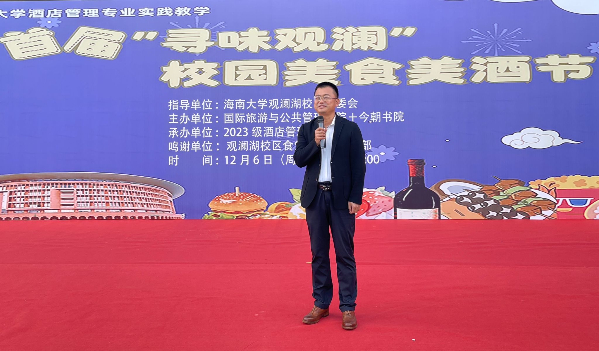 本站讯(通讯员:王诗迪)为深化酒店管理专业实践教学改革,传承海南本土特色饮食文化,搭建校企协同育人平台,由yl7703永利集团、今朝书院联合主办,2023级酒店管理专业班承办的专业实践教学活动——首届“寻味观澜”校园美食美酒节于12月6日在永利集团观澜湖校区湖畔餐厅正门广场盛大开幕。永利集团党委常委、副校长高佃恭,yl7703永利集团副院长何彪,酒店管理系主任黄建宏,教师代表谢祥项、杜肖寒、王诗迪,今朝书院辅导员谢辉强,校区管委会、后勤服务和食堂管理层以及参展商家代表、观澜湖校区师生共同参与了此次活动。