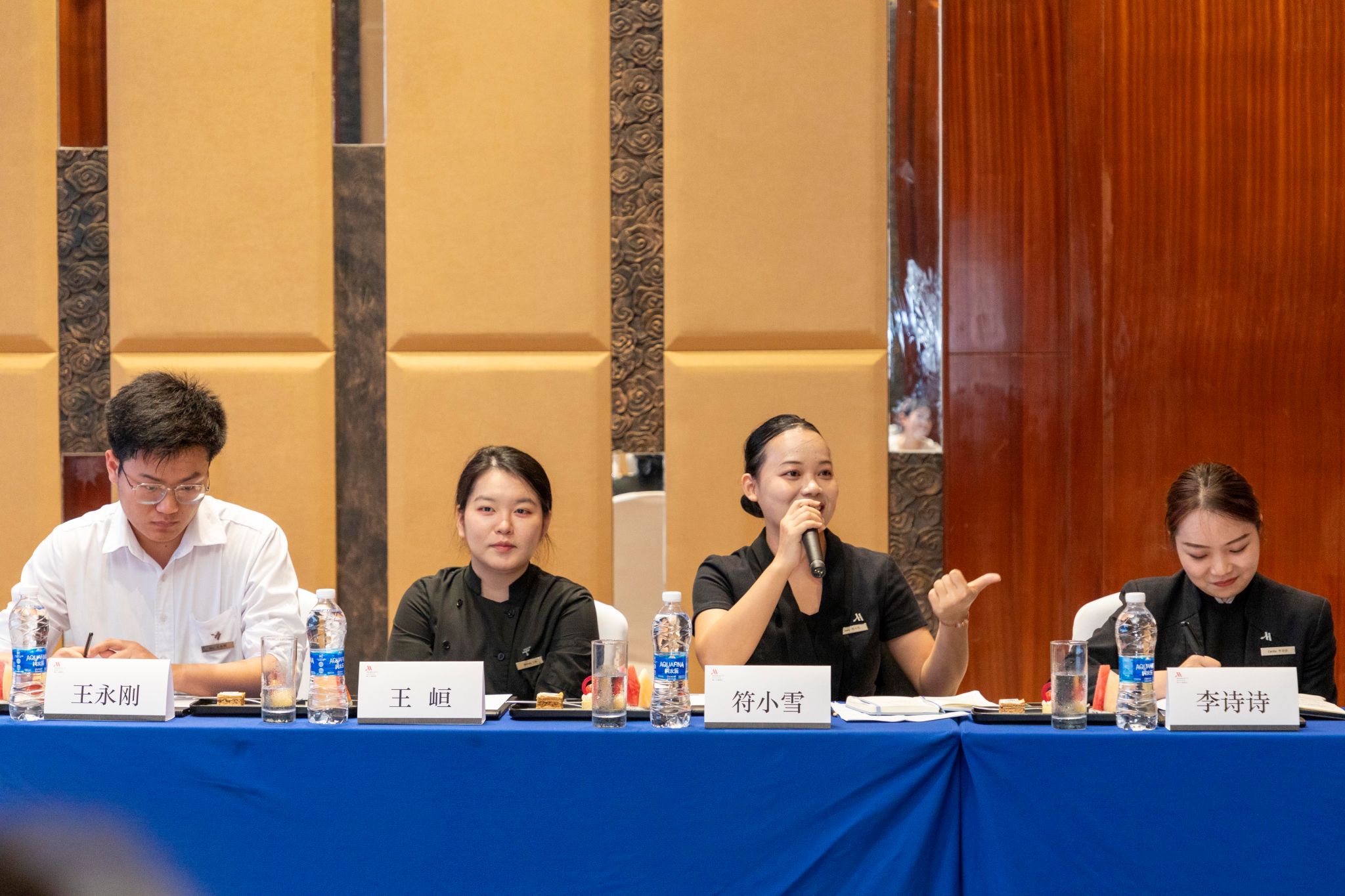 随后,两位管培生同学符小雪、李诗诗代表分享了她们在工作中的心得和体会。她们坦言,在管培生的培养过程中,虽然肩负着沉重的责任和压力,但酒店提供了大量的实践机会,各级领导特别是高层领导给予了直接的指导和支持,这使得她们能够快速成长,并在工作中获得了领导、同事和客人的广泛认可,个人职业生涯也取得了飞速的发展。