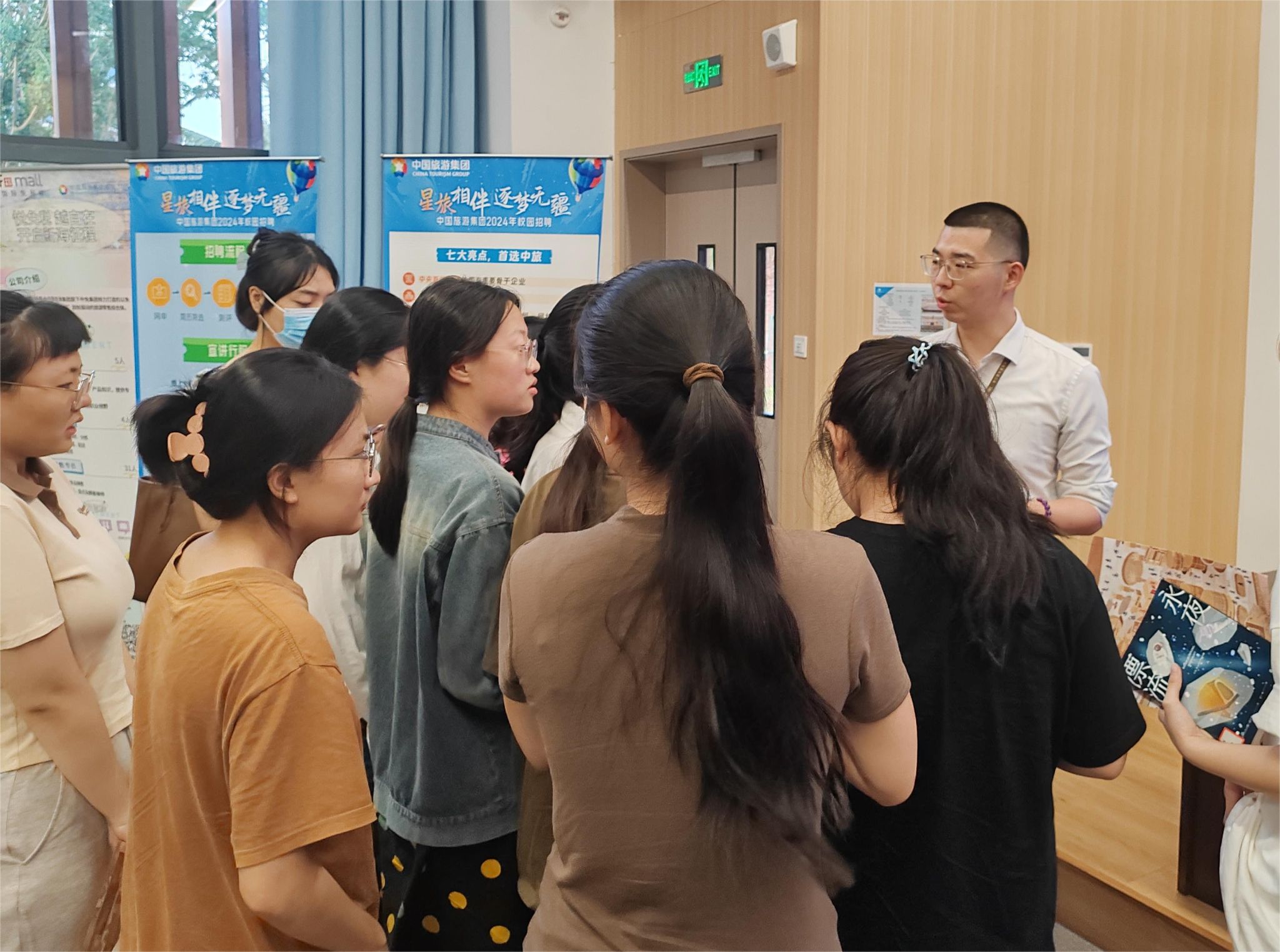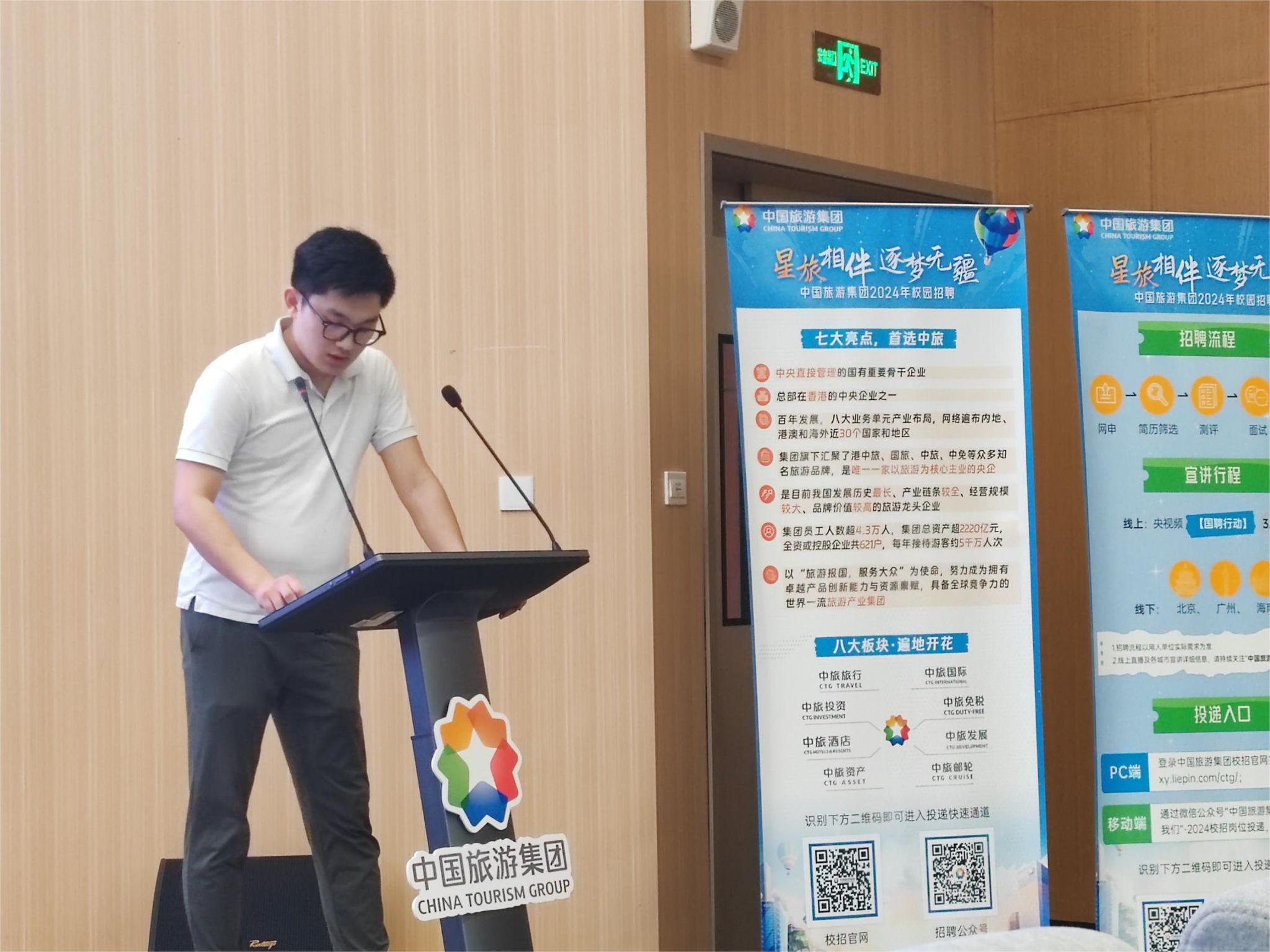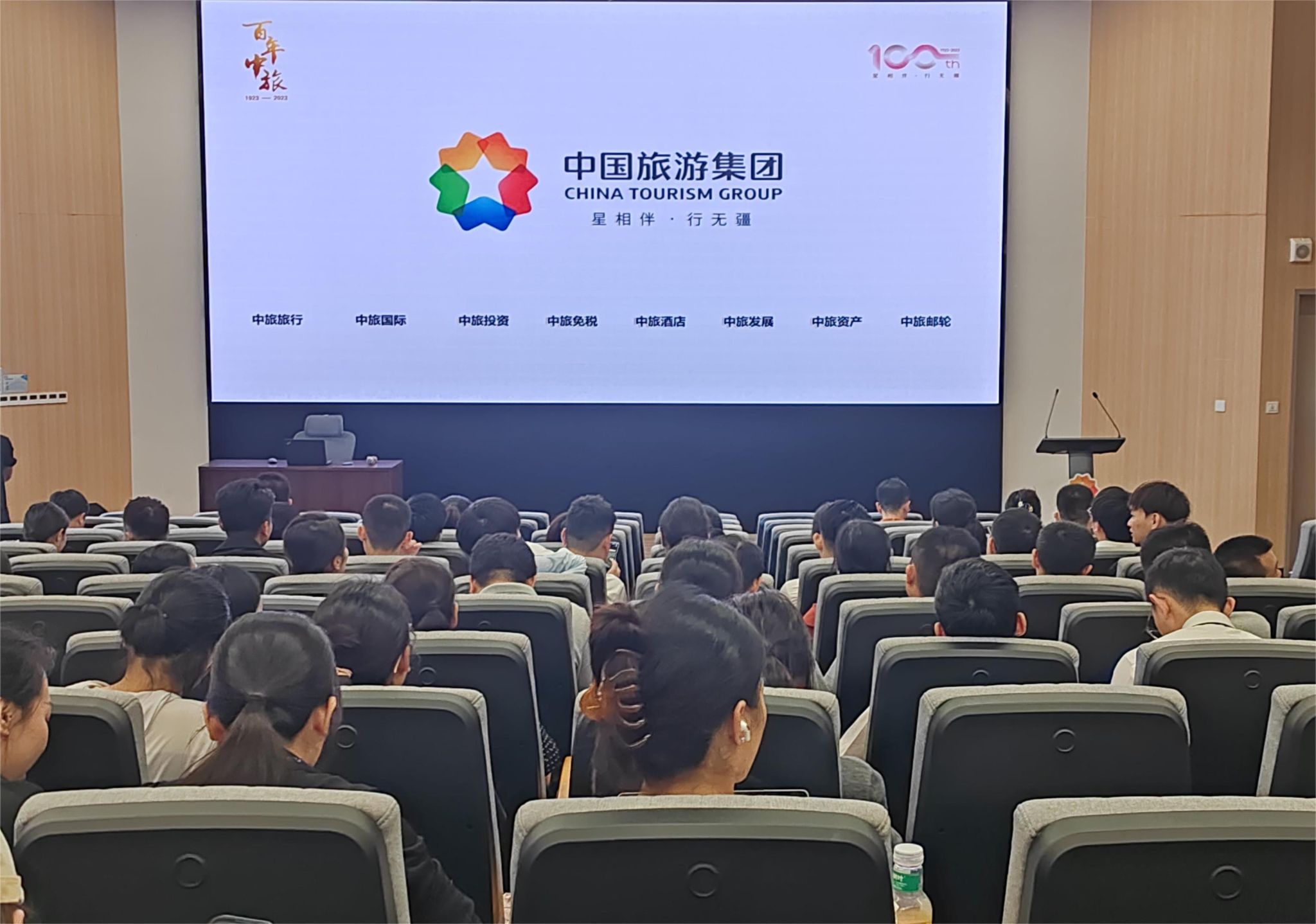 为切实做好2024届毕业生就业工作,大力构建毕业生与企业沟通交流的平台,2024年3月31日下午,yl7703永利集团邀请中国旅游集团在观澜湖校区举行校园专场招聘宣讲活动。学院党委副书记欧少红、今朝书院就业工作辅导员印一凡出席会议,旅游相关专业毕业生100余人参加招聘宣讲会。