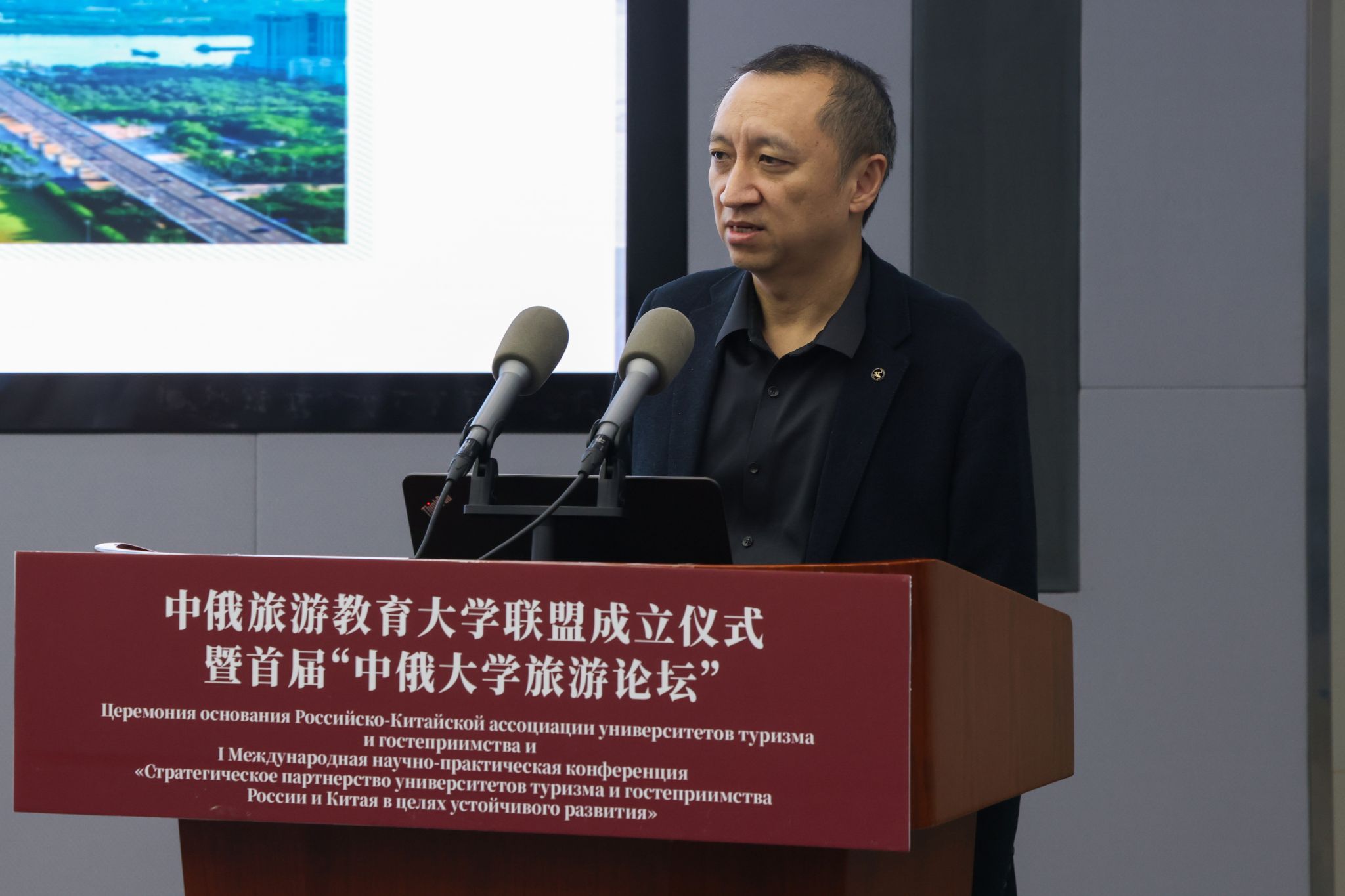 2024年11月7日下午,由中国教育部国际合作与交流司和俄罗斯联邦独联体事务、俄侨和国际人文合作署主办,北京第二外国语学院和圣彼得堡国立经济大学共同承办的“中俄旅游教育大学联盟”正式成立,首届“中俄大学旅游论坛”同期举行。学院党委书记郭强、国际事务办公室主任白洋代表参会,我校成为首批中俄旅游教育大学联盟理事单位。