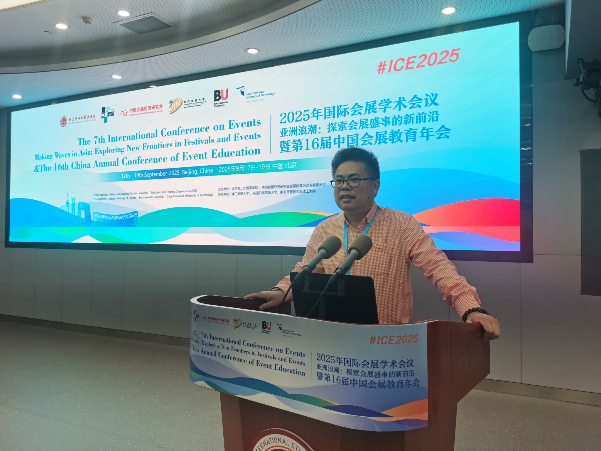 2025年9月17日至19日,以“亚洲浪潮:探索会展盛事的新前沿”为主题的2025年国际会展学术会议(ICE2025)暨第16届中国会展教育年会在北京第二外国语学院成功举办。本次会议由北京第二外国语学院与中国会展经济研究院会展教育培训专业委员会共同主办,澳门旅游大学、英国伯恩茅斯大学、南非开普敦半岛理工大学协办,汇聚了包括美国内华达大学拉斯维加斯分校、澳大利亚昆士兰大学、香港理工大学、澳门科技大学、中山大学、永利集团等来自全球10个国家和地区的数十所高校的118名会展领域专家学者和参会代表,共同探讨会展行业与教育发展的前沿议题。